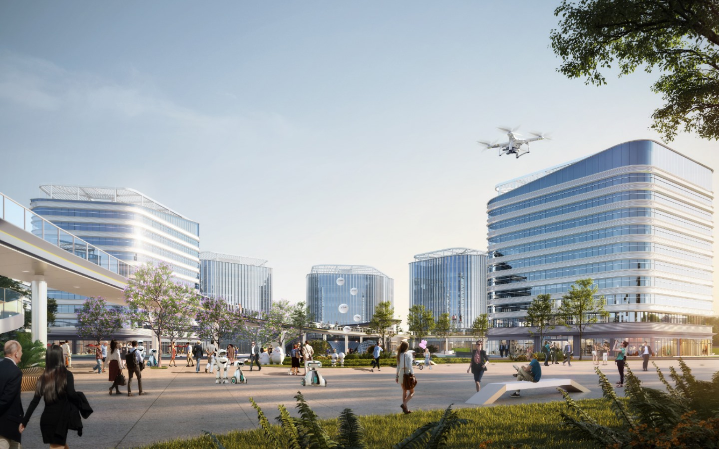 作为物流片区唯一的综合服务园区,项目承担了片区复合产业服务功能,围绕跨境电商、航空物流等产业,立足“人城产”融合发展的理念,建设商务办公、酒店、公寓、配套商业等核心功能,打造宜居宜业的产业社区。